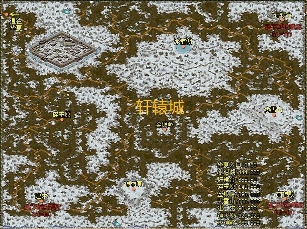 三、熟悉各NPC功能后去华夏城周边练级(城镇中使用tab键可放大地图,但在地下城中是无法使用此键)